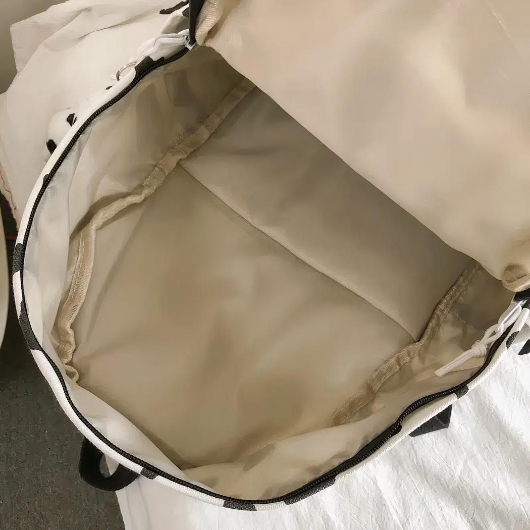 Ce sac à dos se distingue par son imprimé vache ludique et charmant. Le joli motif ajoute une note de gaieté et de tendance à votre look, idéal pour les amateurs de mode qui aiment l’originalité.