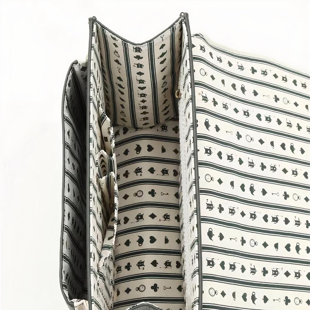 Chaque élément du sac a été conçu avec soin pour créer une esthétique harmonieuse. Du choix des motifs à l’emplacement des poches et des fermetures éclair, tout a été pensé pour offrir un ensemble à la fois élégant et pratique.