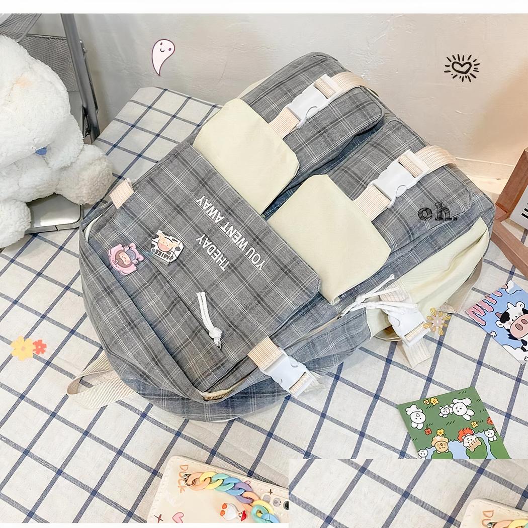 Ce sac à dos carreaux 5 pièces est un accessoire de mode pratique et élégant.