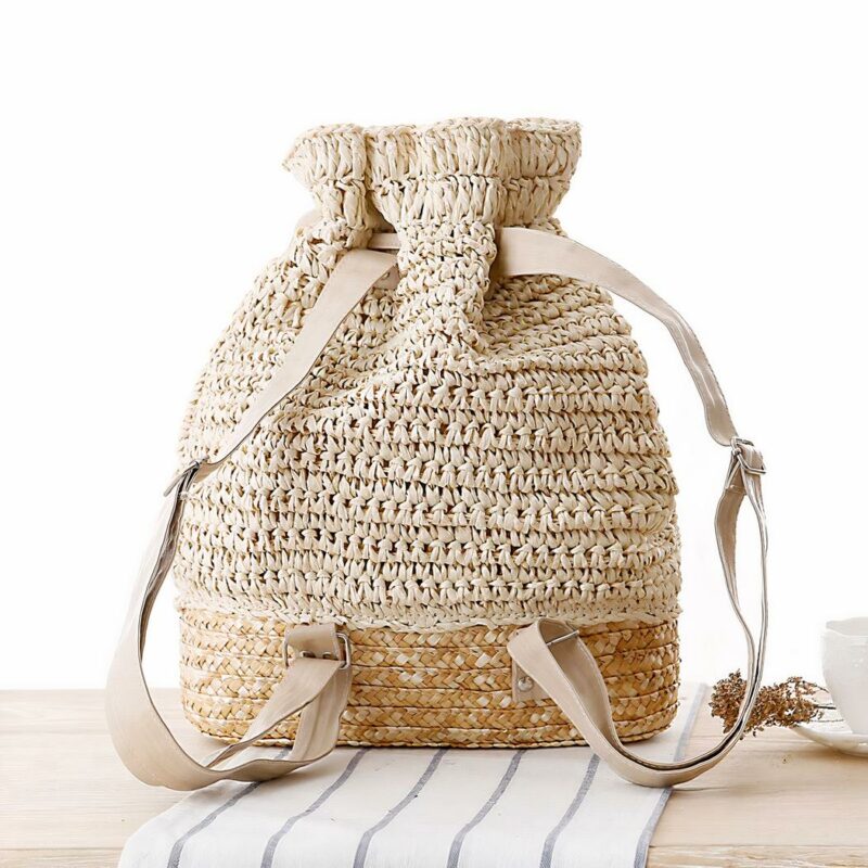 Il est fait de paille durable, légère et résistante aux intempéries. Sa conception ergonomique offre une grande liberté de mouvement et un excellent confort. Le cordon coulissant assure une fermeture sûre et pratique, tandis que les bretelles réglables permettent un ajustement personnalisé.