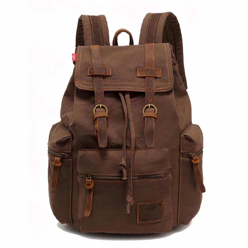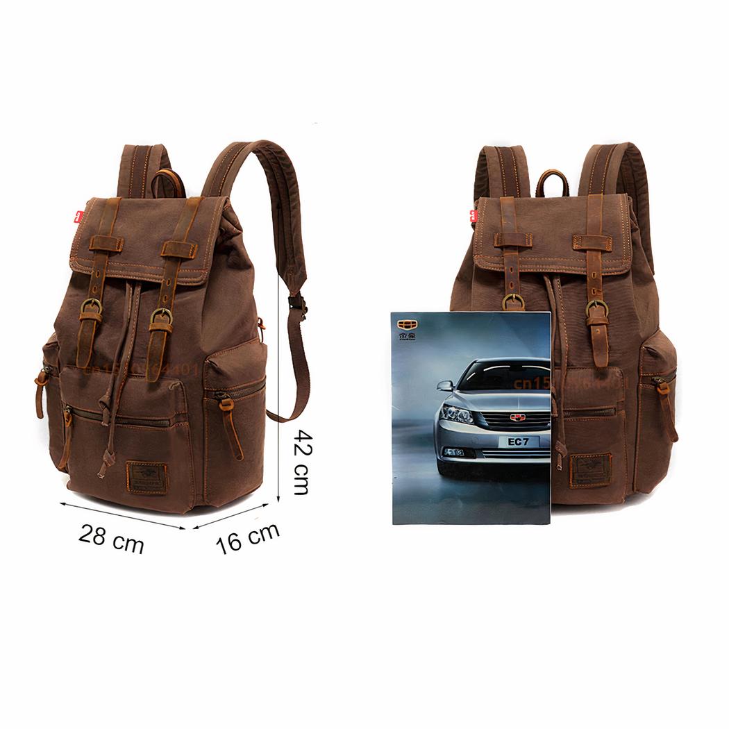 Préparez-vous à l’aventure ! Notre sac à dos en toile pour homme est fait de matériaux ultra résistants et imitation vintage, avec des fermetures éclair en acier inoxydable, deux compartiments principaux et des poches latérales. Emplissez le grand compartiment principal avec vos affaires de tous les jours et emmenez votre équipement de sport dans les poches latérales !