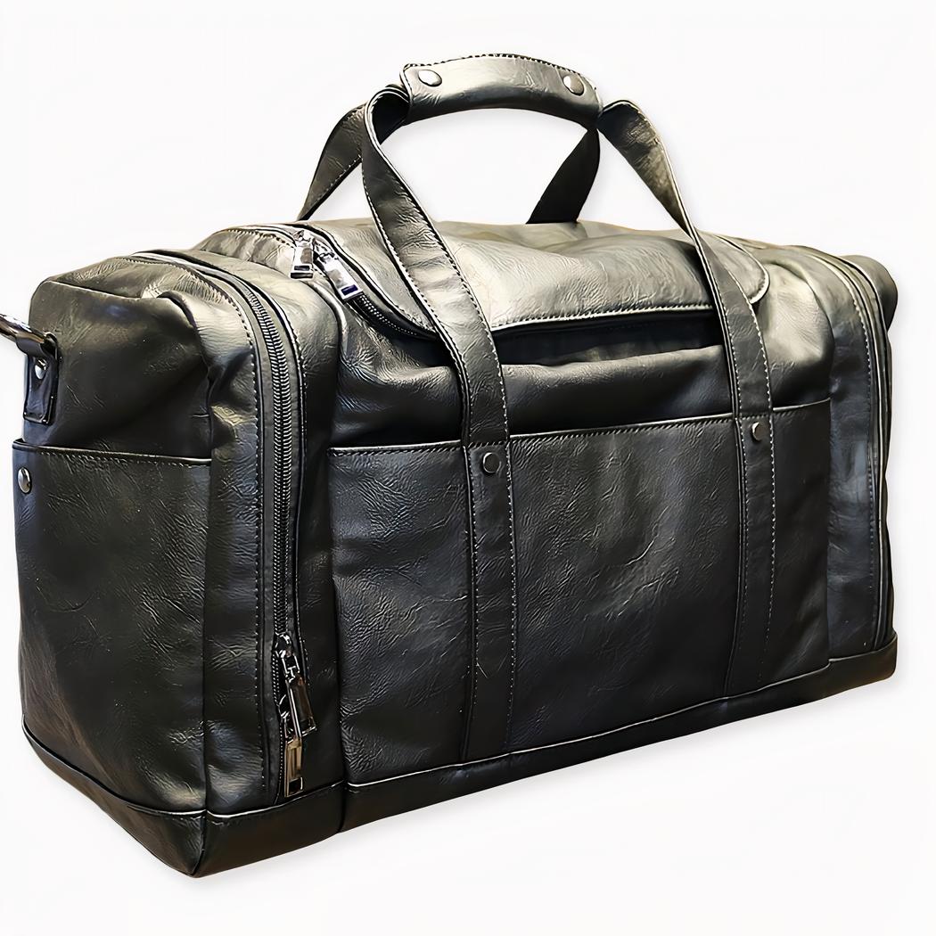 Ce grand sac de voyage en cuir végan est le compagnon idéal pour vos déplacements. Sa construction robuste et durable en fait un accessoire indispensable pour tous les voyageurs.