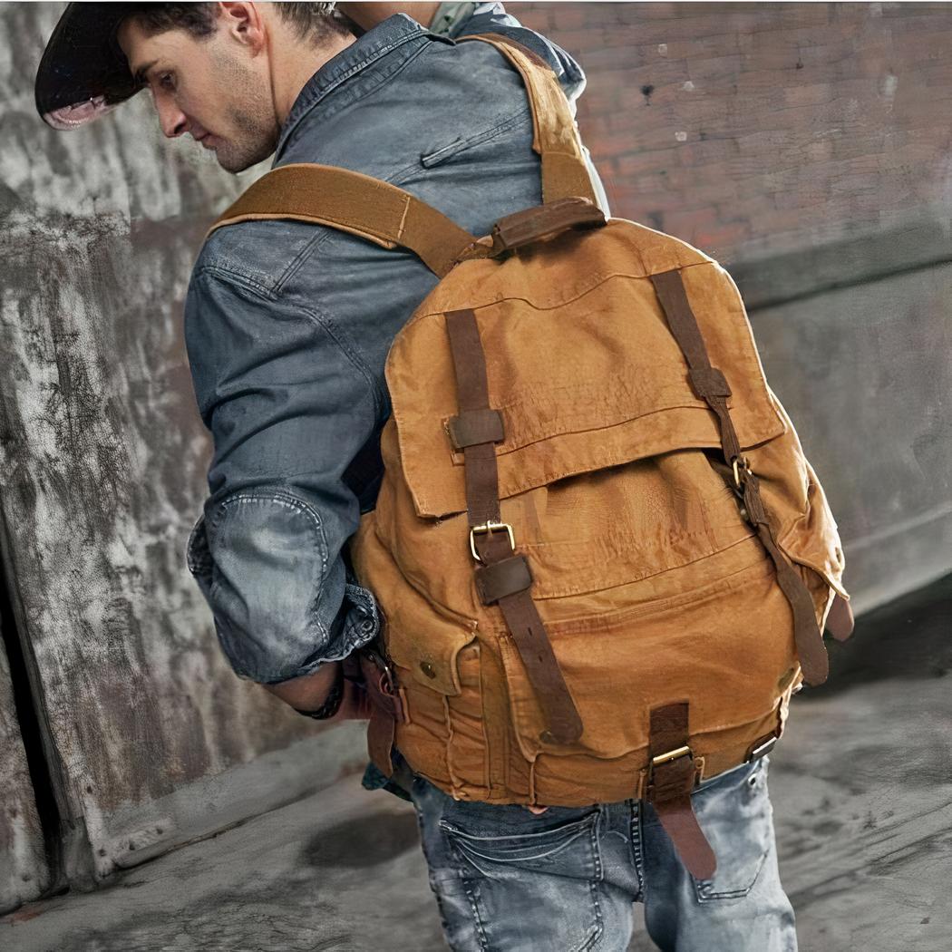 Ce sac à dos vintage en toile est le compagnon idéal pour tous vos déplacements. Il est fabriqué à partir de tissu robuste et durable, ce qui en fait un accessoire résistant et fiable. La couleur sombre et la texture douce et élégante de la toile ajoutent une touche de sophistication à votre look.